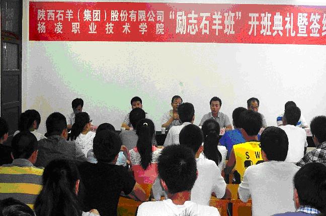 7月9日晚,石羊集團(tuán)第二屆“勵(lì)志石羊班”開班及校企合作簽字儀式隆重舉行。楊凌職業(yè)技術(shù)學(xué)院動(dòng)工學(xué)院黨總支書記王秉信、動(dòng)物醫(yī)學(xué)教研室主任薛增迪,陜西石羊(集團(tuán))股份有限公司人力資源部總經(jīng)理周博寧、農(nóng)牧人力資源部經(jīng)理袁丙雷,楊凌石羊財(cái)務(wù)經(jīng)理王磊峰及30名訂單班學(xué)生參加了開班儀式。儀式由楊職院學(xué)工辦主任鄧留坤主持。