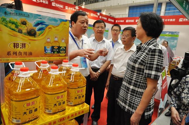 省政協(xié)副主席馮月菊、陜西省商務(wù)廳廳長(zhǎng)姚超英等領(lǐng)導(dǎo)特意參觀了石羊集團(tuán)的展位。集團(tuán)總裁常青山詳細(xì)給各位領(lǐng)導(dǎo)介紹了石羊集團(tuán)全產(chǎn)業(yè)鏈的運(yùn)營(yíng)模式與未來企業(yè)的遠(yuǎn)景規(guī)劃。最后,政府領(lǐng)導(dǎo)們對(duì)石羊集團(tuán)的產(chǎn)品與社會(huì)貢獻(xiàn)給予了充分的肯定,同時(shí)就企業(yè)的發(fā)展方向作了重要的指示,并寄予了深切的希望。常青山總裁表示:在省、市政府的正確領(lǐng)導(dǎo)和支持下,集團(tuán)全體同仁將繼續(xù)努力為老百姓提供可靠、安全、綠色、優(yōu)質(zhì)農(nóng)產(chǎn)品,做好農(nóng)業(yè)產(chǎn)業(yè)化國(guó)家重點(diǎn)龍頭企業(yè)的榜樣。