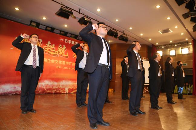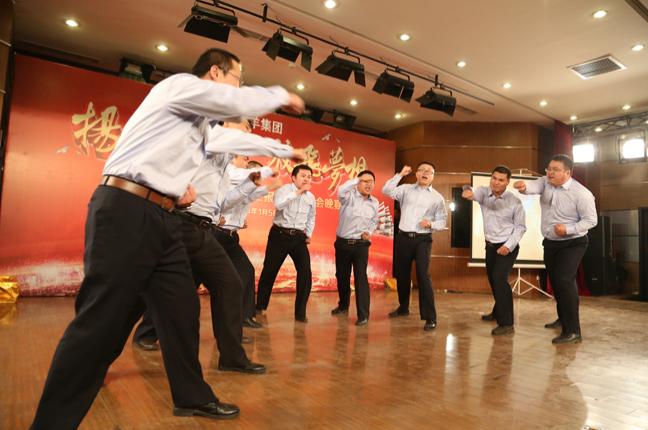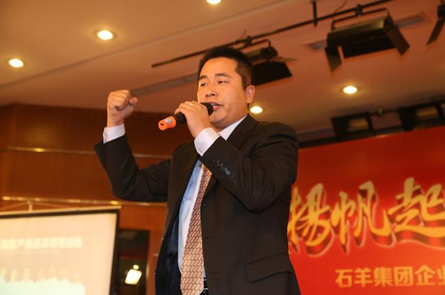 2013年度是石羊集團(tuán)企業(yè)文化年,此次工作會(huì)議特意在晚宴前增加了“事業(yè)與夢(mèng)想”演講和團(tuán)隊(duì)風(fēng)采展示環(huán)節(jié)。此環(huán)節(jié)由總裁助理趙超與集團(tuán)項(xiàng)目投資部總經(jīng)理傅巧艷主持,各個(gè)產(chǎn)業(yè)選派精英管理人員代表參加。金融、油脂、農(nóng)牧、地產(chǎn)用相同的演藝元素展示各自不同的團(tuán)隊(duì)風(fēng)采和演講者的魅力,現(xiàn)場(chǎng)歡快、熱烈、團(tuán)結(jié)、激情的氣氛感染了現(xiàn)場(chǎng)的每一個(gè)人,徹底引爆了全場(chǎng)的氣氛!