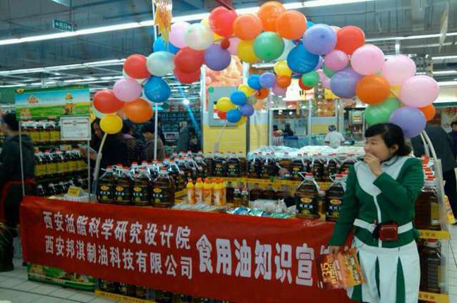 這次推廣,油脂產(chǎn)業(yè)以邦淇獲“2013陜西顧客滿意度測評食用油行業(yè)最佳顧客滿意獎”殊榮為契機,高度重視、精心組織、全員參與,以“您的健康、我的牽掛”為主題,貫穿“誠信、責任、擔當”;體現(xiàn)“綠色、安全、科普”,為更好指導(dǎo)科學消費,特意邀請石羊油脂產(chǎn)業(yè)戰(zhàn)略合作伙伴——西安油脂科學研究設(shè)計院有關(guān)專家全程參與西安的全部活動,接受消費者現(xiàn)場咨詢、舉辦油品知識講座、指導(dǎo)食用油鑒別常識,重點是結(jié)合石羊油品安全、綠色、健康的價值理念進行宣講,西安KA分別在華潤渭濱路店、人人樂玉祥門店舉行,兩天達成銷量180桶;社區(qū)分別在大明宮西鐵小區(qū)、鳳城六路菁華名門、乾唐華府舉行,兩天實現(xiàn)銷售100余桶,通過空桶優(yōu)惠、贈送防霧霾口罩等形式,對邦淇特別是石羊品牌的傳播意義深遠。