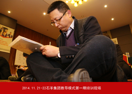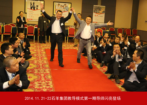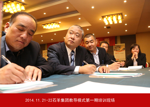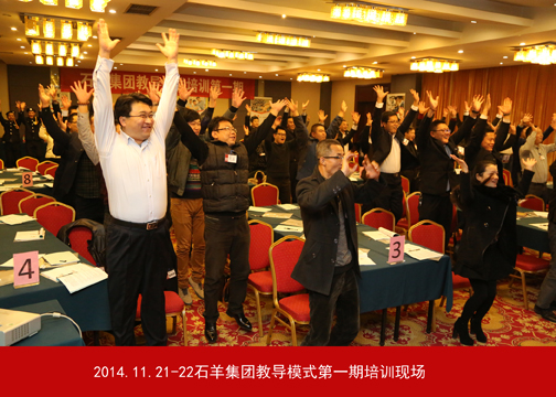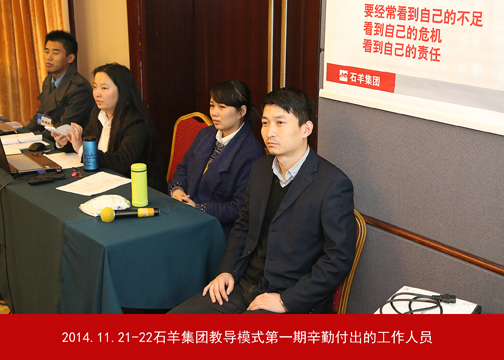 11月20日—22日,石羊集團(tuán)教導(dǎo)培訓(xùn)第一期在未央湖畔的度假酒店成功舉行。按集團(tuán)董事長(zhǎng)魏存成在2014年第三季度經(jīng)營(yíng)檢討會(huì)上的部署,本次活動(dòng)旨在向各事業(yè)部主管級(jí)以上人員傳達(dá)、推廣教導(dǎo)模式。此次培訓(xùn)得到了大量教導(dǎo)家人的支持,現(xiàn)場(chǎng)邀請(qǐng)到師道書(shū)院汪蓉老師,同時(shí)還感召到王亞妮、丘煒等企業(yè)家人作為教導(dǎo)員。此次培訓(xùn)學(xué)員分別來(lái)自匯邦地產(chǎn)、金融、農(nóng)牧、大食品及外部學(xué)員共計(jì)75人,培訓(xùn)導(dǎo)師、教導(dǎo)團(tuán)和小天使人員30余人。