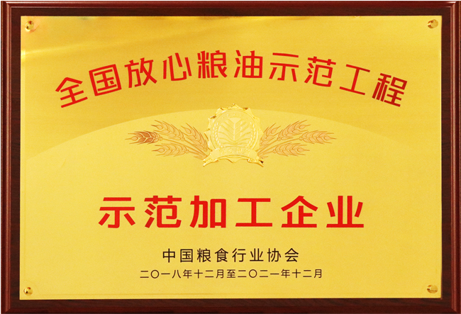 2018年12月-2021年12月中國糧食行業(yè)協(xié)會授予“全國放心糧油示范工程示范加工企業(yè)”