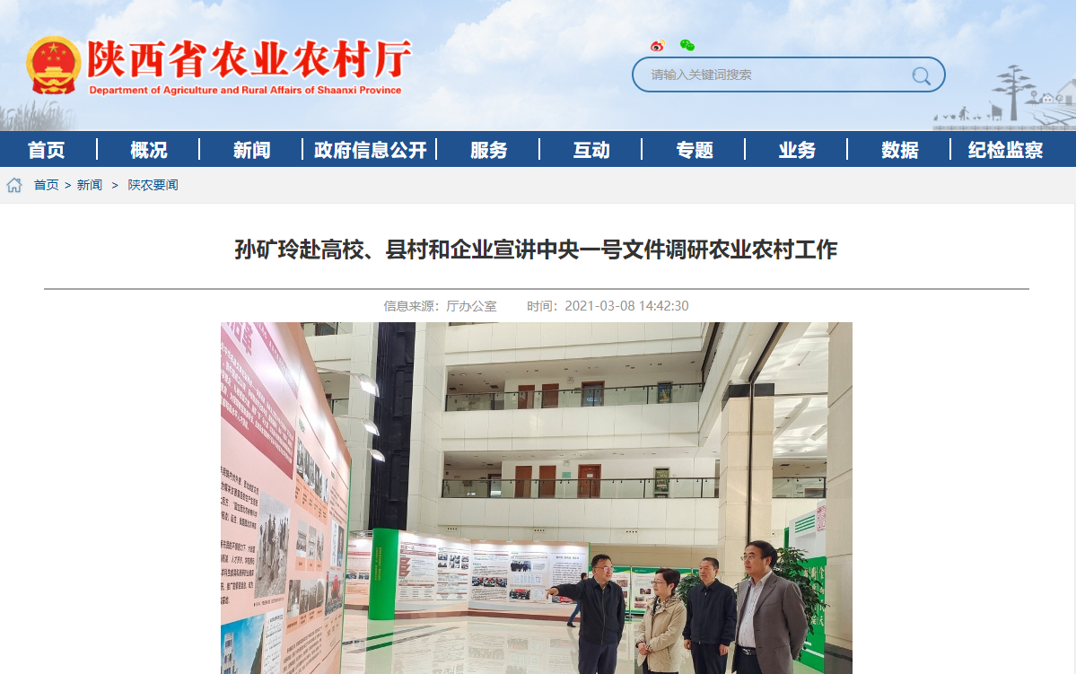 3月3日-5日,省委農(nóng)辦主任、省農(nóng)業(yè)農(nóng)村廳廳長孫礦玲先后赴西北農(nóng)林科技大學、西安市長安區(qū)和陜西糧農(nóng)集團、石羊集團開展“學政策、搞調(diào)研、抓落實、促振興”活動,宣講中央一號文件、調(diào)研農(nóng)業(yè)農(nóng)村工作。西北農(nóng)林科技大學黨委書記李興旺出席有關活動,西安市副市長贠笑冬,省委農(nóng)辦副主任、省農(nóng)業(yè)農(nóng)村廳副廳長陳文參加有關調(diào)研。