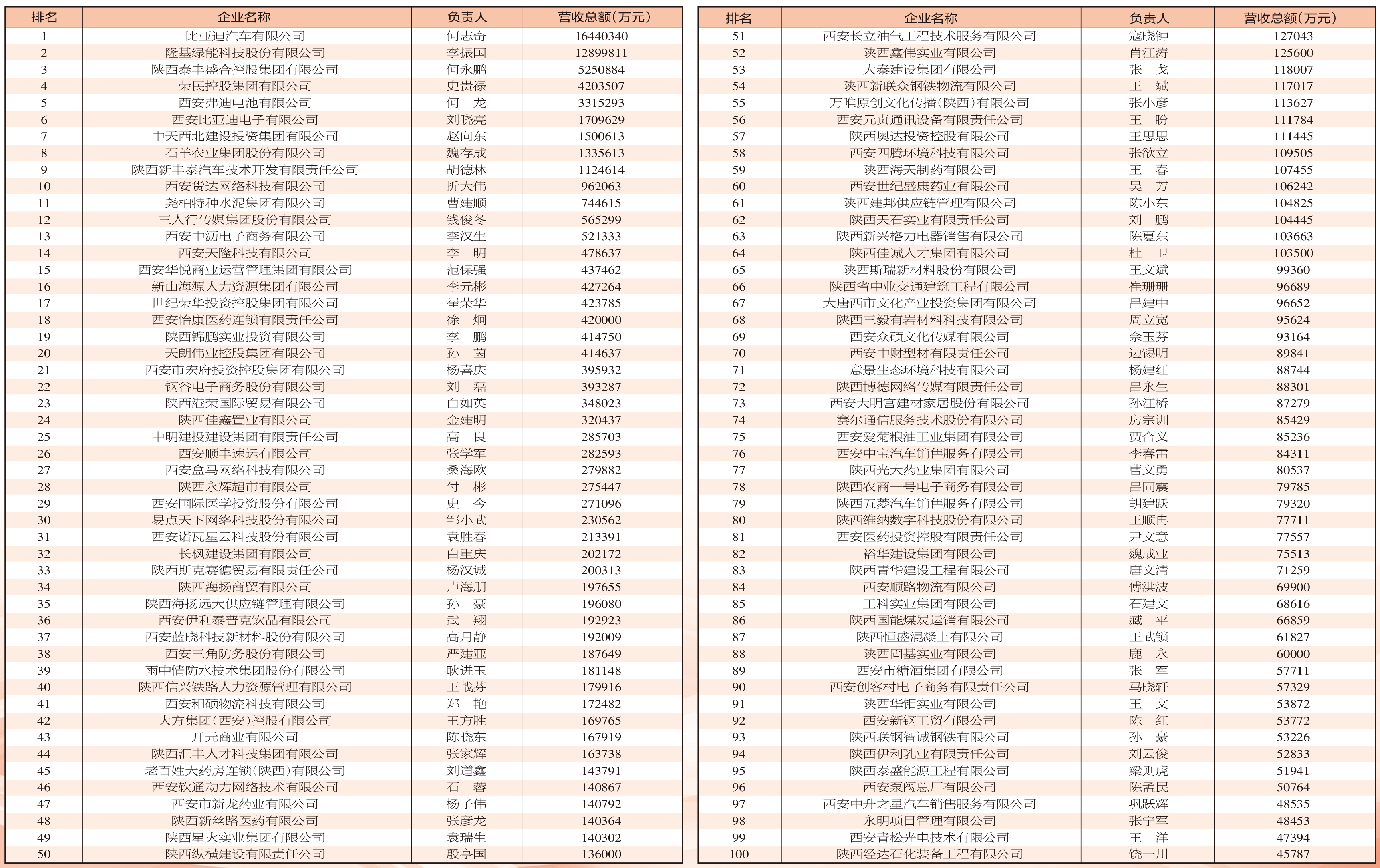 ▲2023西安民營企業(yè)100強(qiáng)榜單